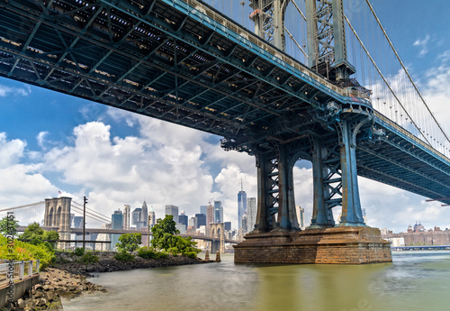 Naklejka premium Brooklyn Bridge and Downtown Manhattan from Brooklyn