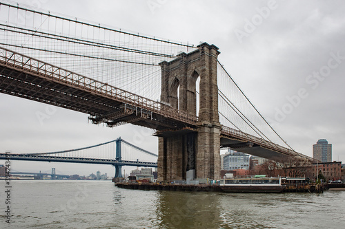 Obraz premium Brooklyn Bridge and Manhattan Bridge over East River in downtown Manhattan