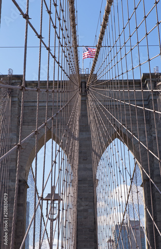 © teddyh, Fototapeta premium Brooklyn Bridge Archway and US Flag, New York