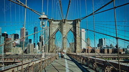 © khalid, Fototapeta premium Brooklyn Bridge at morning, skyscrapers of Manhattan on background