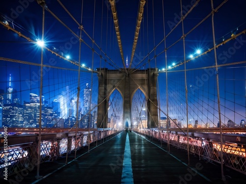 © AI ARLI, Fototapeta premium Brooklyn Bridge at Night: A Cityscape Under the Stars