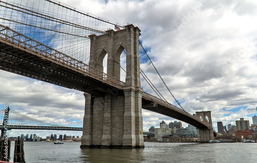 © Yuriy T, Obraz premium brooklyn bridge detail (suspension over east river in new york city) nyc tourist destination landmark travel (manhattan transit connection) america united states usa history historical architecture