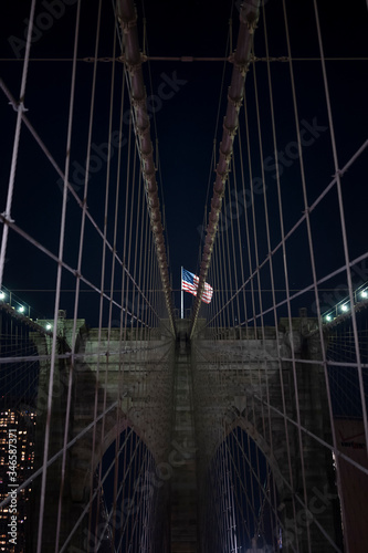 Fototapeta premium Brooklyn bridge during nighttime american flag