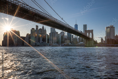 Fototapeta premium Brooklyn Bridge, East River and Lower Manhattan in Background. NYC Skyline....
