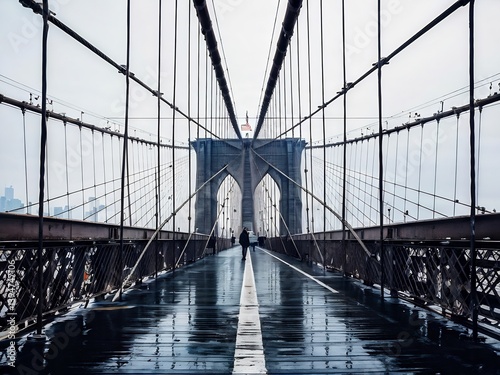 © AI ARLI, Fototapeta premium Brooklyn Bridge in a Misty Day