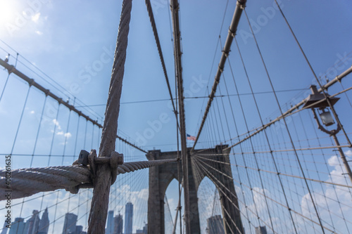 © sayrhkdsu, Fototapeta premium Brooklyn Bridge in New York City with complex cables installed