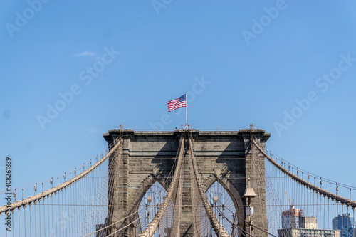 Fototapeta premium Brooklyn Bridge in New York City with complex cables installed