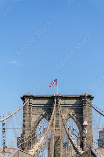 © sayrhkdsu, Fototapeta premium Brooklyn Bridge in New York City with complex cables installed