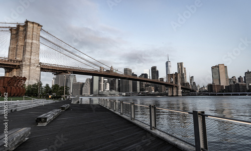 Fototapeta premium Brooklyn bridge in New York. Manhattan cityscape. Amazing scenery of Brooklyn...