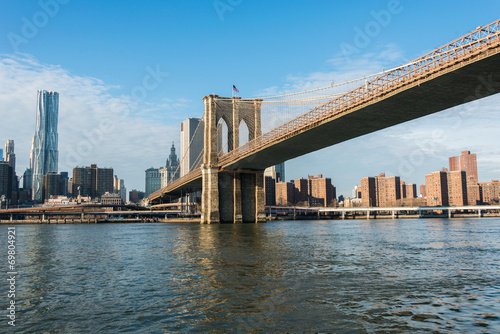Fototapeta premium Brooklyn bridge in New York on bright summer day