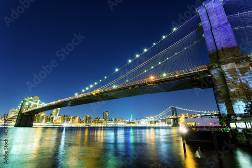 Fototapeta premium Brooklyn bridge, manhattan night view from hudson