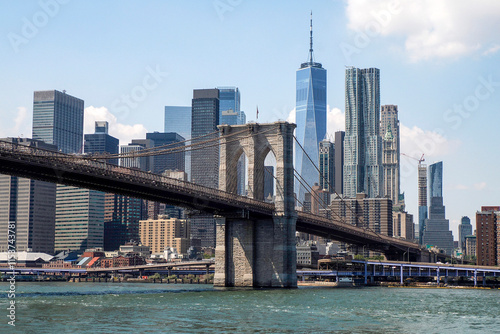 Naklejka premium Brooklyn bridge new york manhattan view from East river