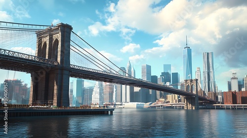 Obraz premium Brooklyn Bridge with New York City Skyline under a Blue Sky