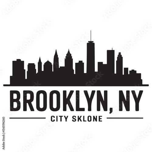 Naklejka premium Brooklyn, NY, city skyline. Black cityscape banner. Vector black silhouette. with white background