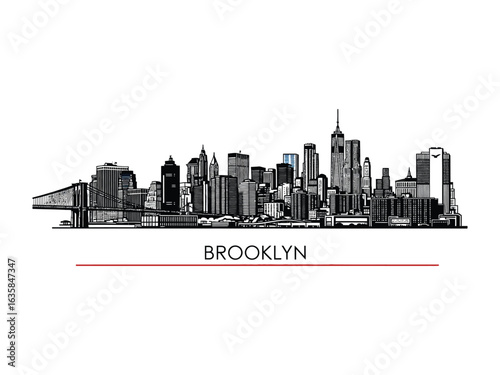 Naklejka premium Brooklyn Skyline: A captivating sketch of Brooklyn's iconic skyline,...