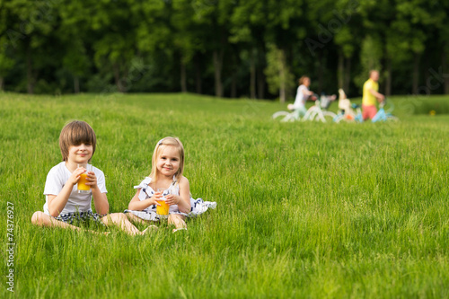 Fototapeta premium Brother and sister on picnic