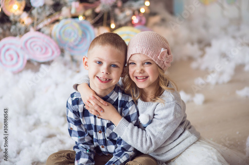 Obraz premium brother and sister 6-7-8 years old, happy children, bright colors