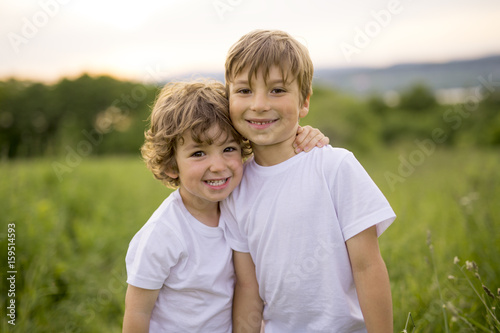 © Louis-Paul Photo, Fototapeta premium Brother play together in a green meadow