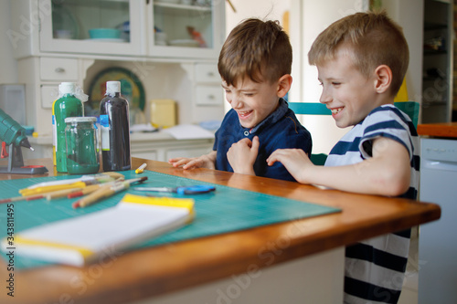 © Stock Rocket, Fototapeta premium Brothers having fun at home during quarantine