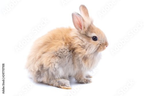 © natsarun, Fototapeta premium Brown adorable baby rabbit on white background.
