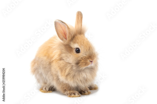 Fototapeta premium Brown adorable baby rabbit on white background.