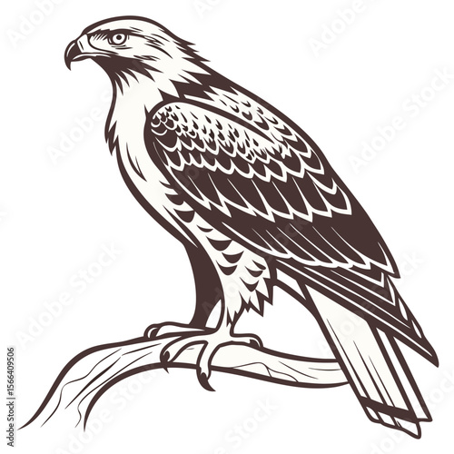 © rezastudio, Fototapeta premium Brown and cream hawk perched on branch vector illustration