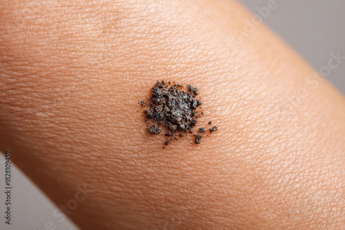 Obraz premium Brown and gray textured substance on skin, showcasing unique patterns and details in close-up view