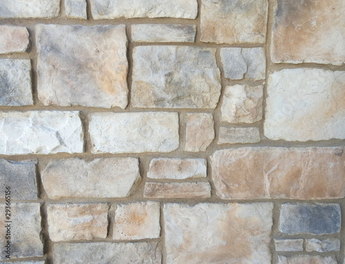 Fototapeta premium Brown and Grey Stone Wall with Mortar on Building