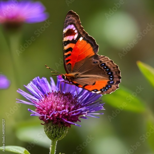 Obraz premium Brown and red butterfly perched on purple flower