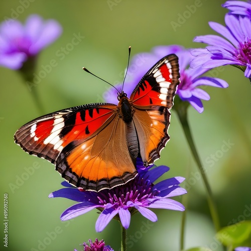 Fototapeta premium Brown and red butterfly perched on purple flower