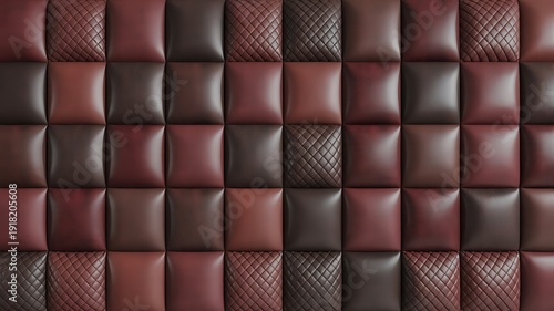© Ghazala, Fototapeta premium Brown and Red Leather Upholstery Wall Panels - Textured Geometric Pattern