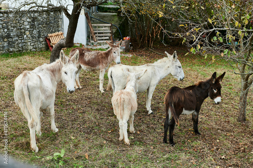 © Juanma, Fototapeta premium Brown and White donkeys, Artziniega