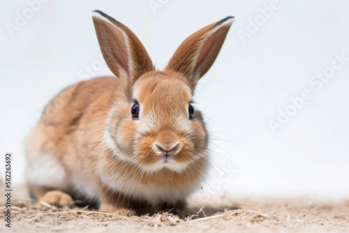 Fototapeta premium Brown and white rabbit Wonderful to be on the ground. On a white background, split. Generative AI