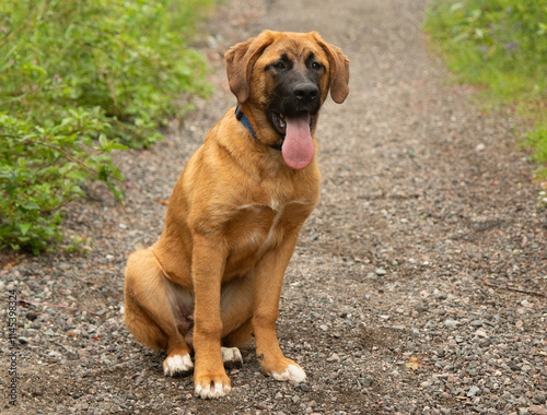 © Ashley, Obraz premium brown and white shepherd mix puppy dog panting outdoors portrait