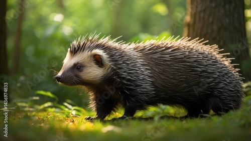 © Lio, Fototapeta premium "Brown Baby Bunny in Flower Field – Cute Rabbit Spring Photo"