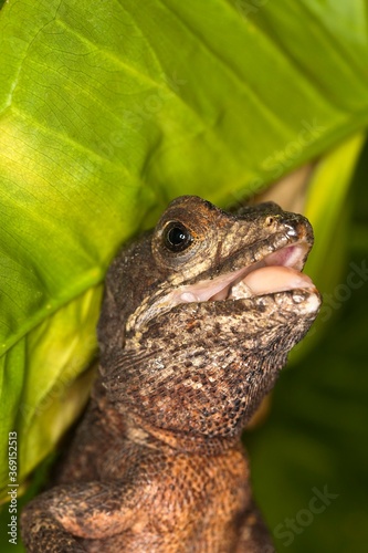 © slowmotiongli, Obraz premium BROWN BASILISK LIZARD basiliscus vittatus, ADULT CRYING