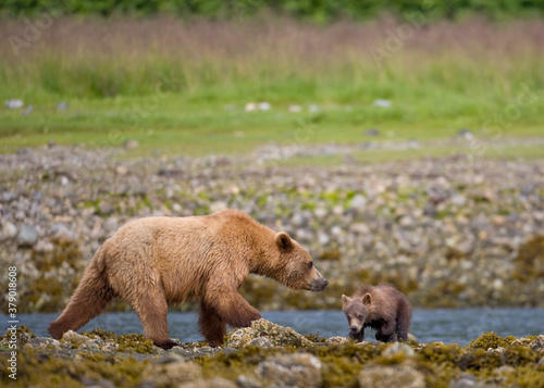 © Paul, Fototapeta premium Brown Bear along Low Tide Line, Alaska