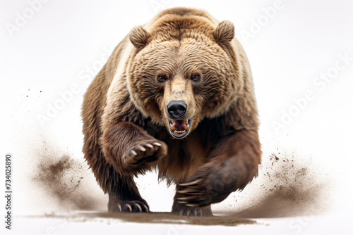 Fototapeta premium Brown Bear Charging on a White Background. Beautiful animal portrait.