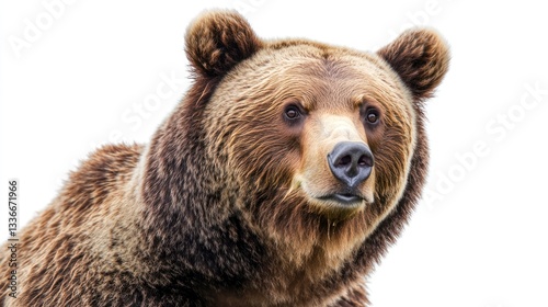 © ahmad, Fototapeta premium Brown Bear Close-up Portrait Against White Background. Possible Use Nature, Wildlife Stock
