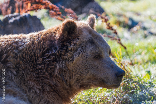 © OlegD, Obraz premium Brown bear face in the Carpathian mountains on a autumn day, close up. Ukraine