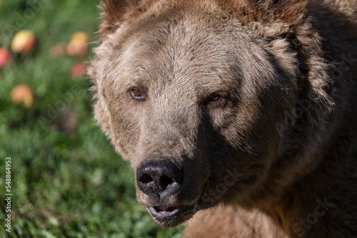 © OlegD, Fototapeta premium Brown bear face in the Carpathian mountains on a autumn day, close up. Ukraine