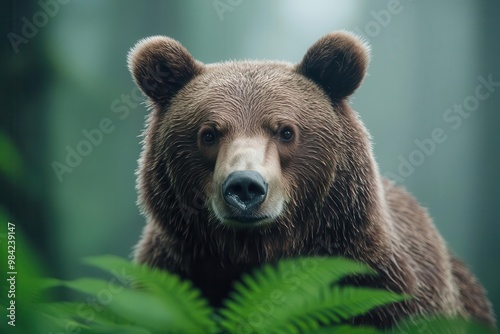 © 1000lnw, Fototapeta premium Brown bear in a lush green forest, wildlife close-up.