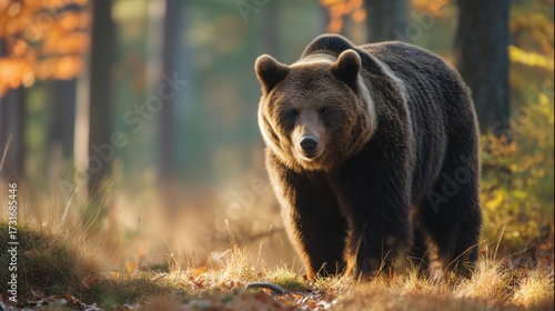 © yang, Fototapeta premium Brown Bear in Autumn Forest Habitat