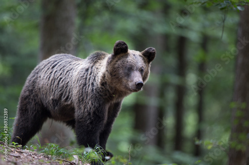 © Budimir Jevtic, Fototapeta premium Brown bear in forest in summer time