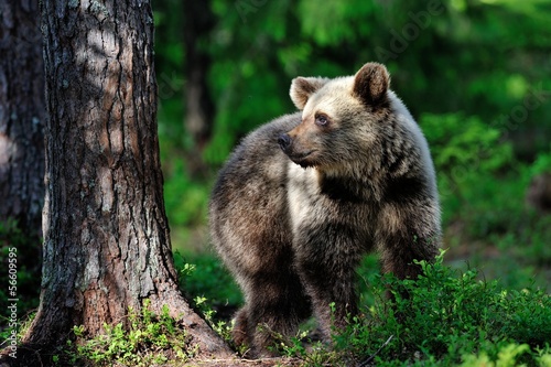 © Erik Mandre, Obraz premium Brown bear in the forest at sunlight