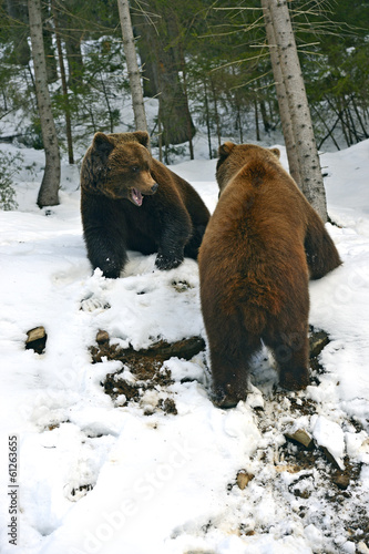 Naklejka premium Brown bear in the woods in winter