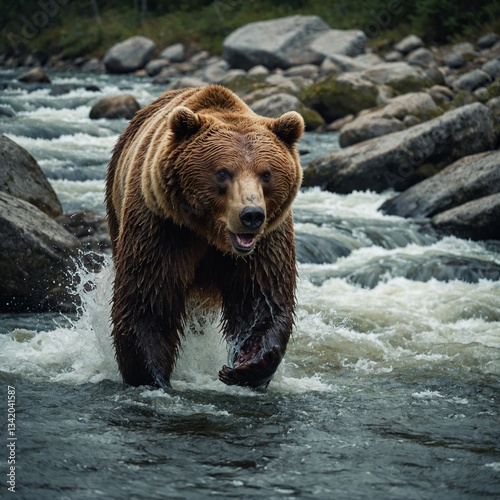 © MuhammadUmar, Obraz premium brown bear in water