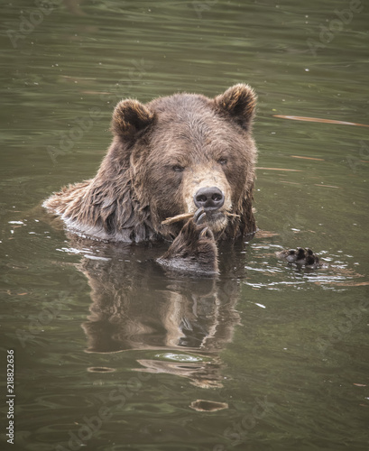Obraz premium Brown Bear Playing with Stick