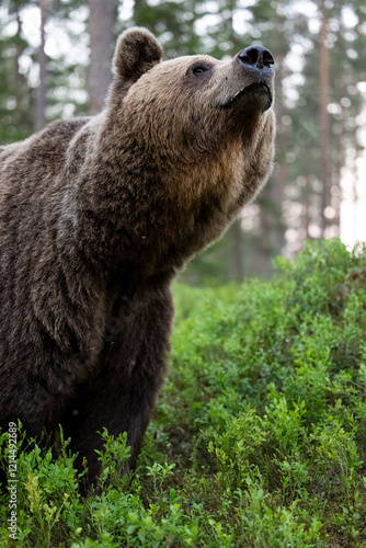 © Erik Mandre, Obraz premium Brown bear portrait, bottom up view