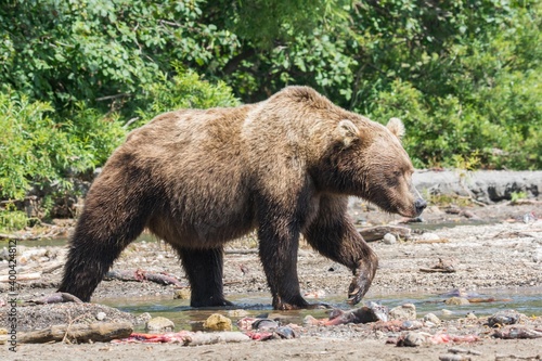© Stanislav, Fototapeta premium Brown bear predates on salmon, Kamchatka, Russia